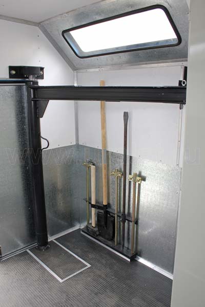 Укосина поворотная смонтирована рядом с задней входной дверью и предназначена для погрузки и разгрузки материалов и оборудования весом не более 500 кг.