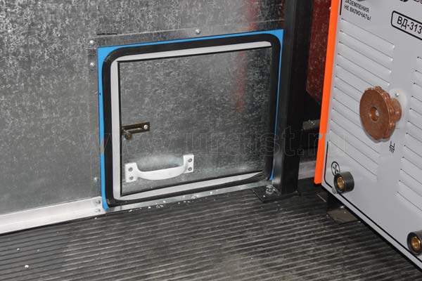 Для быстрого доступа и удобства эксплуатации выпрямителя сварочного в кузове-фургоне предусмотрен специальный люк.