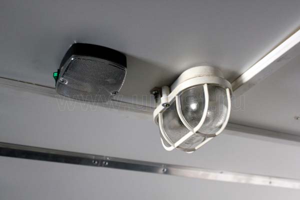 Напряжение 24В постоянного тока подается из электрической схемы базового автомобиля. Автофургон комплектуются необходимым количеством светильников: обычно используются пыле- и влагозащищенные люминесцентные светильники. Возможна установка специальных светильников, исходя из требований для различных классов пожаровзрывобезопасности помещений.