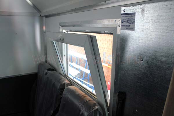 В автофургоне используется только качественная автомобильная фурнитура ведущих европейских производителей. Евроокна изготовлены с применением двойного герметичного стеклопакета из травмобезопасного стекла с уплонителем. Два окна мастерской оборудованы форточками.