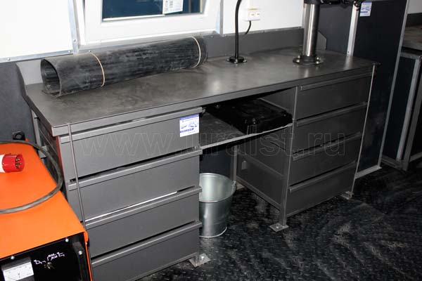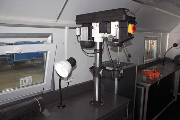 Планировка и расположение оборудования произведены с учетом максимально полезного использования пространства масерской и удобства работы персонала. Все оборудование и инструмент надежно закреплены на штатных местах.