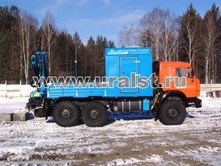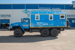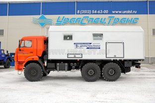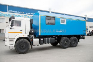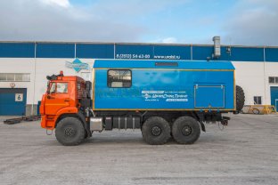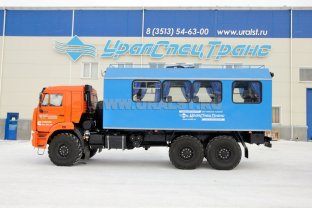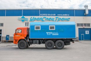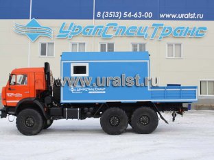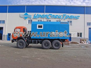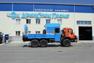 Транспортно-бытовая машина, 2 отсека, открытая бортовая платформа, КМУ ИМ-55 (5,12 тн/м, 2050 кг на 2,5 м, 6,78 м) 6х6, 300 л.с., дв. 740, КП ZF9, спальное место