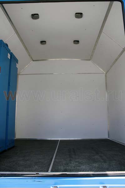 Внутренняя отделка грузового отсека выполнена промышленным пластиком, пол покрыт рифленой резиной.