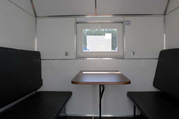 Внутренняя отделка жилого отсека выполнена промышленным пластиком белого цвета, пол покрыт рифленой резиной. Окна с двойным остеклением, оснащены форточкой и удобным механизмом запирания, окантованы двойным уплотнителем.