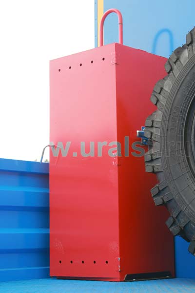 Для избежания перемещения груза во время транспортировки предусмотрены специальные петли для увязки груза. Также на площадке расположены контейнеры для транспортировки и временного хранения газосварочных баллонов.