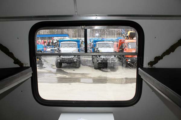 Фургон оборудован окном с форточкой изготовленым с применением двойного герметичного стеклопакета из травмобезопасного стекла с уплонителем. Также фургон ТБМ оснащен аварийным люком обеспечивающим большую проветриваемость салона, в случае необходимости используется как аварийно-эвакуационный люк.