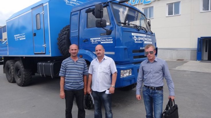 Транспортно-бытовая машина ТБМ на шасси Камаз 43118-3078-46 предназначена для размещения и кратковременного отдыха бригады из 6 человек, а также для транспортировки груза на бортовой платформе. Установленный на заднем свесе кран-манипулятор ИМ-55 позволяет избежать привлечения дополнительной техники для грузоподъемных работ.