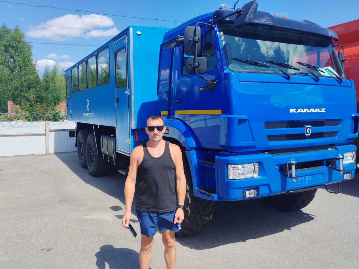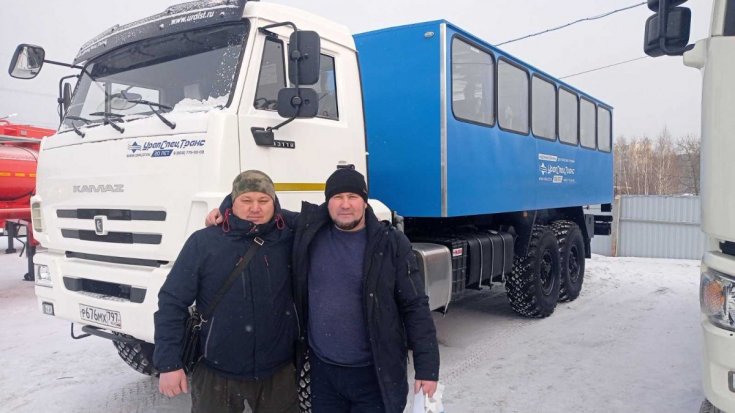 Вахтовый автобус Камаз рассчитан на перевозку бригады из 28 человек. Салон оборудован двухместными сиденьями с ремнями безопасности. Широкая подушка и специальная анатомическая форма спинок сидений с интегрированным в нее подголовником способствует снижению утомляемости пассажиров. Обивка сидений изготовлена из морозоустойчивого материала - искусственной кожи, отличается высокой прочностью и практичностью. С одной стороны сиденья крепятся к стене вахтового автобуса, а с другой - к полу через опорную ногу, что позволяет высвободить пространство под сиденьями пассажиров.