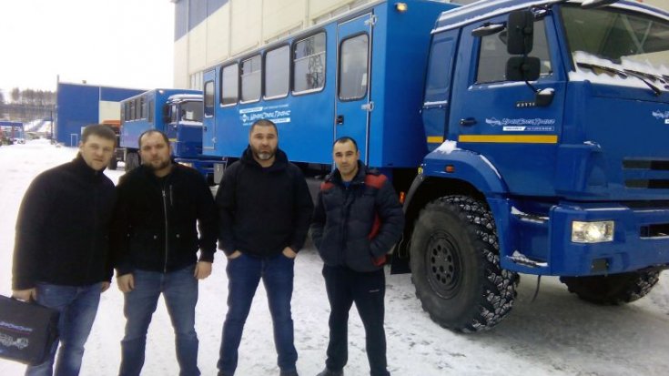 Вахтовый автобус Камаз рассчитан на перевозку бригады из 28 человек в салоне. Салон оборудован двухместными сиденьями с ремнями безопасности. Широкая подушка и специальная анатомическая форма спинок сидений с интегрированным в нее подголовником способствует снижению утомляемости пассажиров. С одной стороны сиденья крепятся к стене вахтового автобуса, а с другой - к полу через опорную ногу, что позволяет высвободить пространство под сиденьями пассажиров.