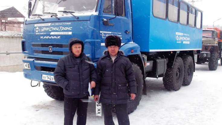 Вахтовый автобус Камаз рассчитан на перевозку бригады из 22 человек + 2 места в кабине водителя. Салон оборудован двухместными сиденьями с ремнями безопасности. Широкая подушка и специальная анатомическая форма спинок сидений с интегрированным в нее подголовником способствует снижению утомляемости пассажиров. Обивка сидений изготовлена из морозоустойчивого материала - искусственной кожи, отличается высокой прочностью и практичностью. С одной стороны сиденья крепятся к стене вахтового автобуса, а с другой - к полу через опорную ногу, что позволяет высвободить пространство под сиденьями пассажиров.