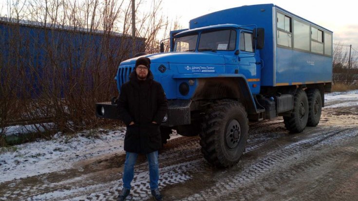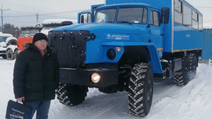 Автобус вахтовый Урал с колесной формулой 6х6 с двигателем экологического класса ЕВРО-5 оборудован кузовом-фургоном с низким полом и предназначен для оперативной доставки рабочих (ремонтных, строительных, геолого-разведывательных и т.п.) бригад в количестве 20 человек на объект (+ 1 пассажирское место в кабине водителя).