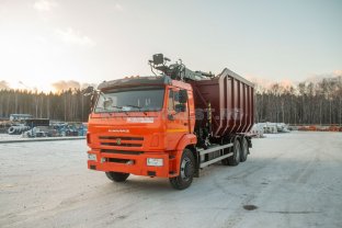 Автомобиль самосвал, самосвальный кузов 30м3, КМУ ВМ10-74М с грейфером лепестковым, 6х4, 300 л.с., дв. КАМАЗ 667.511-300, КП 1310TO, спальное место
