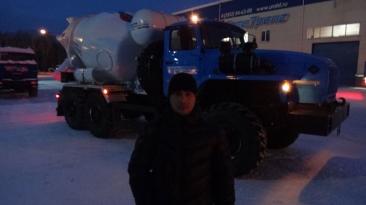 Автобетоносмеситель 5ГП на шасси Урал 5557-60Е5 предназначен для доставки готовой бетонной смеси потребителям с сохранением ее свойств в пути следования и выгрузки в место укладки или бетонотранспортные устройства, а также приготовления бетонной смеси из сухих компонентов на строительном объекте.