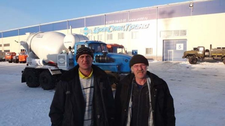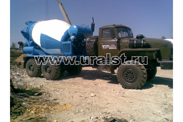 Автобетоносместитель АБС-5 на автомобиле Урал 4320-0911-40 (6х6, ЯМЗ 236НЕ, 230 л.с., утепление кабины пенофолом) с автономным приводом от дизельного двигателя Д-242, емкость 5 м3, машина 2007 г/в, навеска 2008 г/в. новый без эксплуатации. Переоборудование через постановку на учет в ГИБДД.