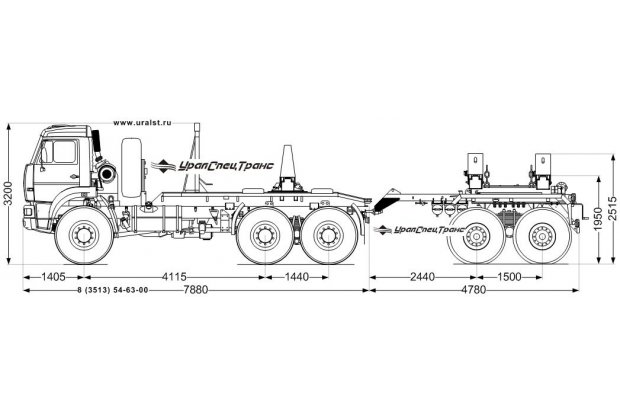 | Комплектация для перевозки трубы длиной до 36 м | Трос тяговый Шлейф пневмосистемы Кабель питающий |